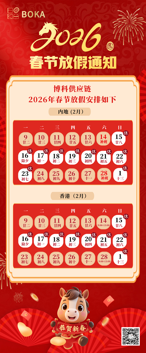 根据国家法定节假日规定,结合公司实际经营情况,现对2026年春节放假具体安排如下: